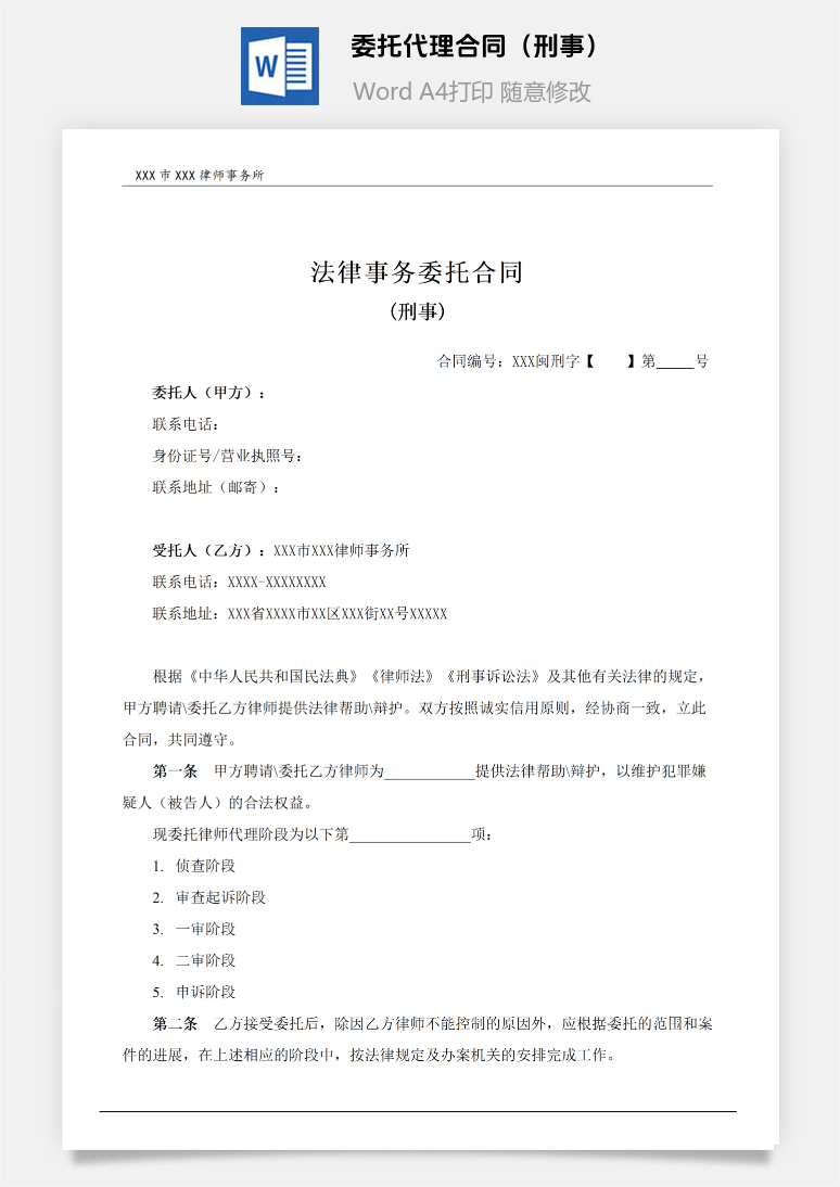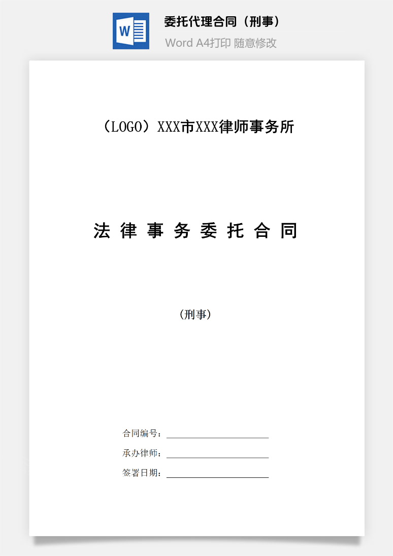 首页 Word模板 代理合同 律师委托代理合同(刑事)