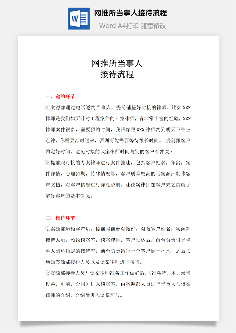 首页 Word模板 律所管理 网推所当事人接待流程