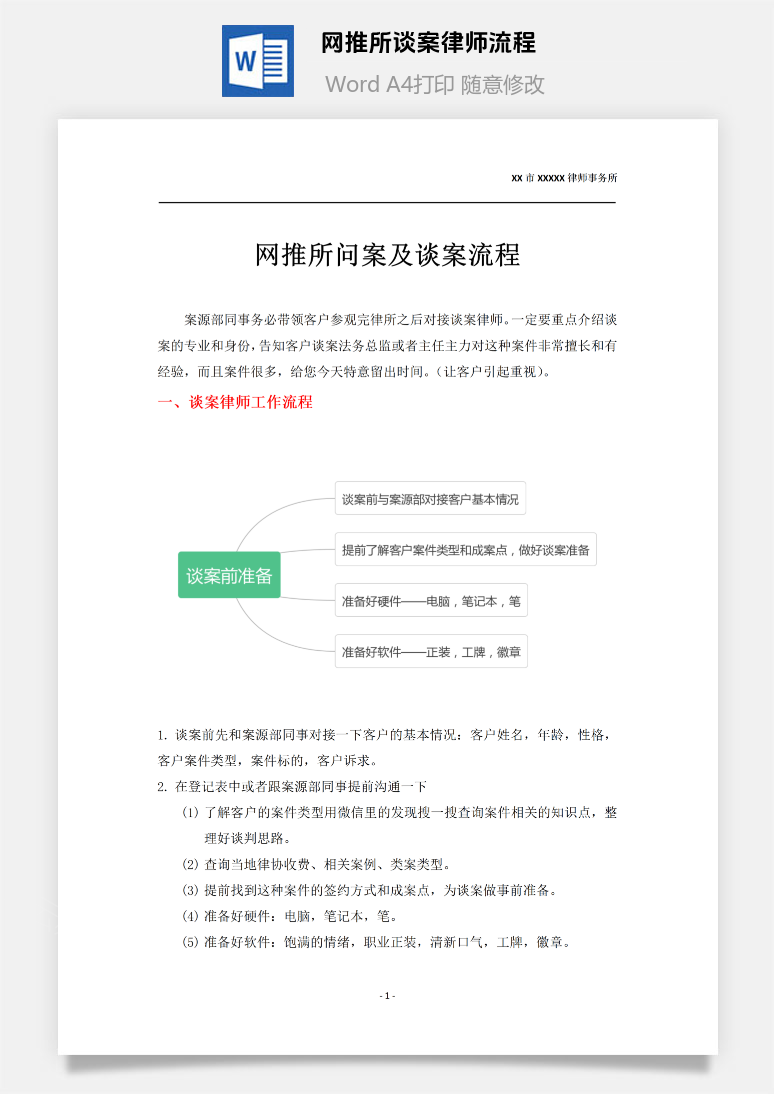 首页 Word模板 律所管理 网推所谈案律师工作流程梳理