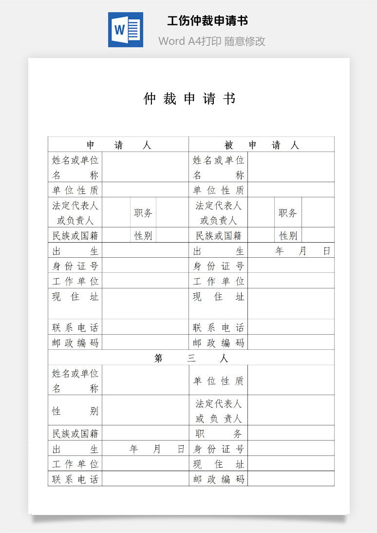 首页 Word模板 法院文书 工伤劳动仲裁申请书