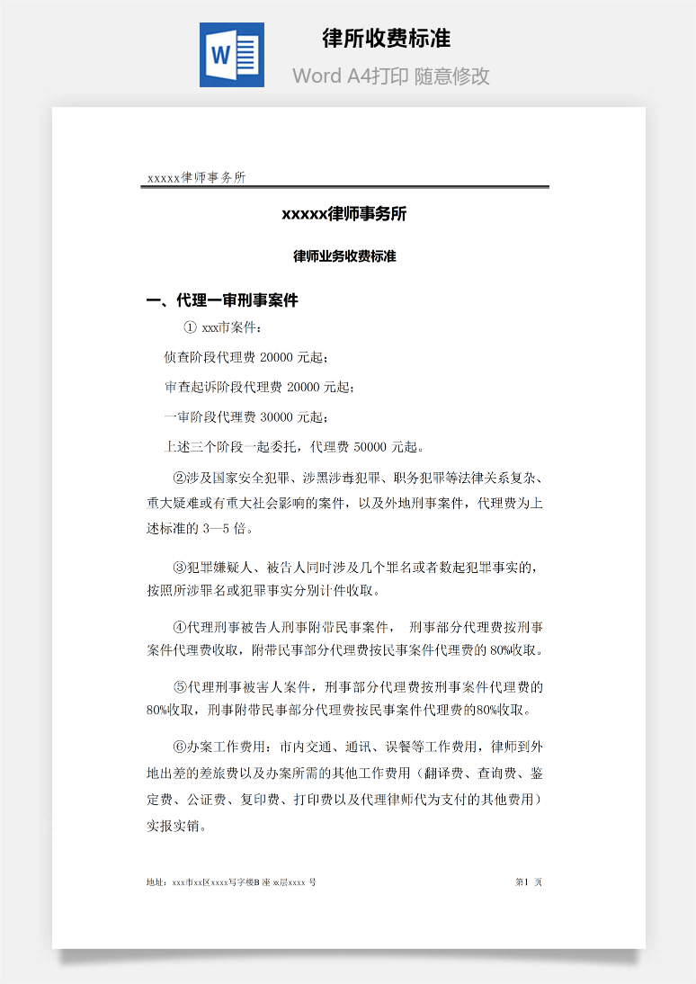 首页 Word模板 律所管理 律师事务所收费标准模板