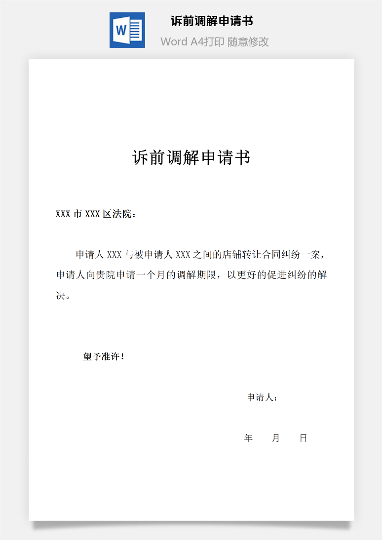 首页 Word模板 法院文书 诉前调解申请书