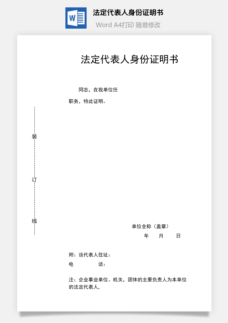 首页 Word模板 法院文书 法定代表人身份证明书
