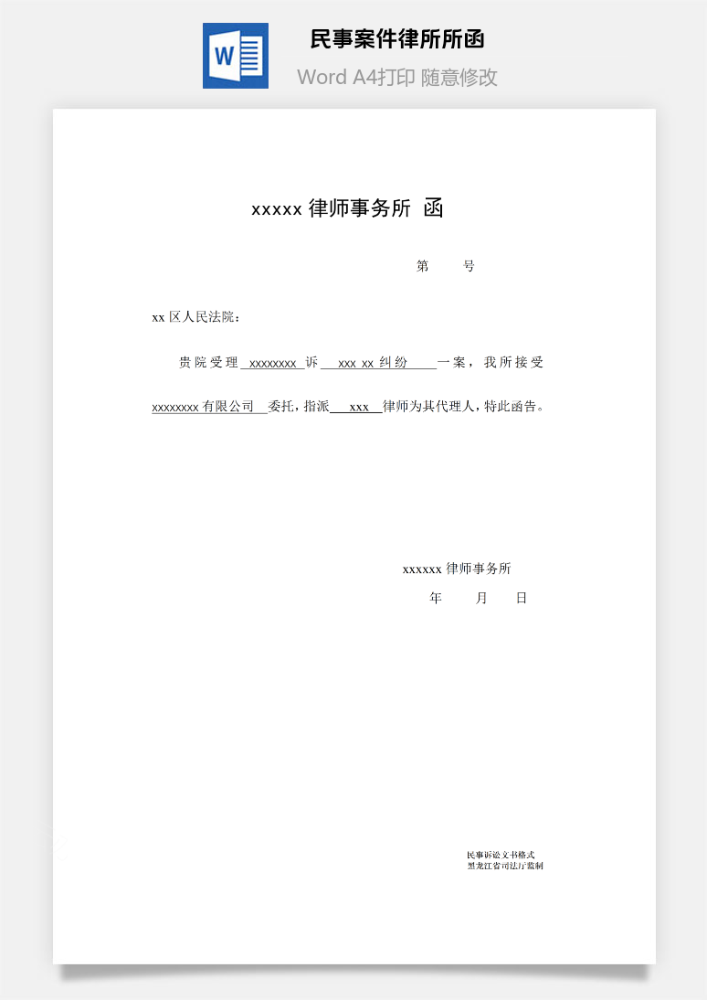 首页 Word模板 律所管理 民事案件律师事务所所函