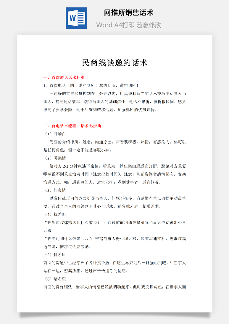 首页 Word模板 律所管理 网推所电话销售接案话术