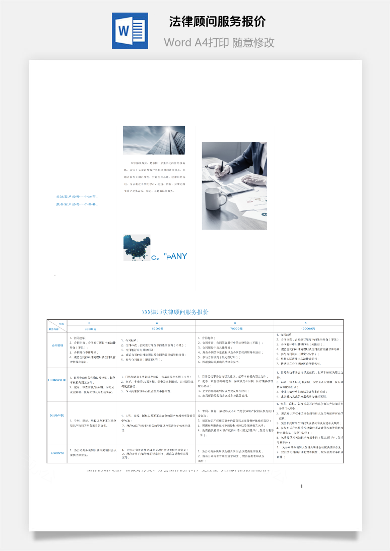 首页 Word模板 律所管理 法律顾问服务报价