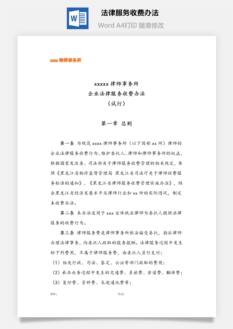 首页 Word模板 律所管理 律师事务所法律服务收费办法