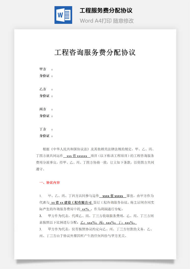 首页 Word模板 合同范本 工程服务费分配协议(居间合同)