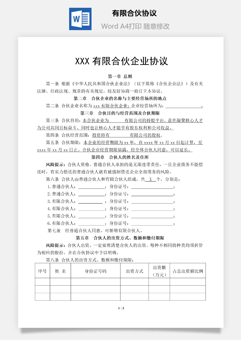 首页 Word模板 合同范本 有限合伙企业协议(持股平台)