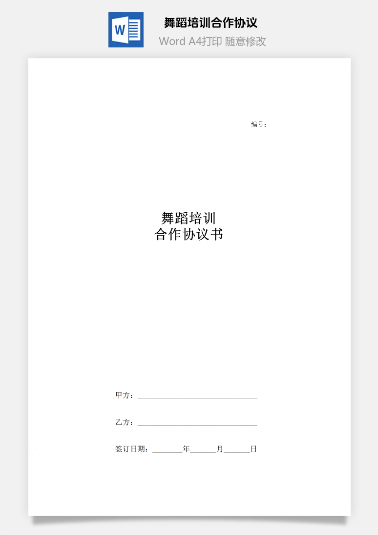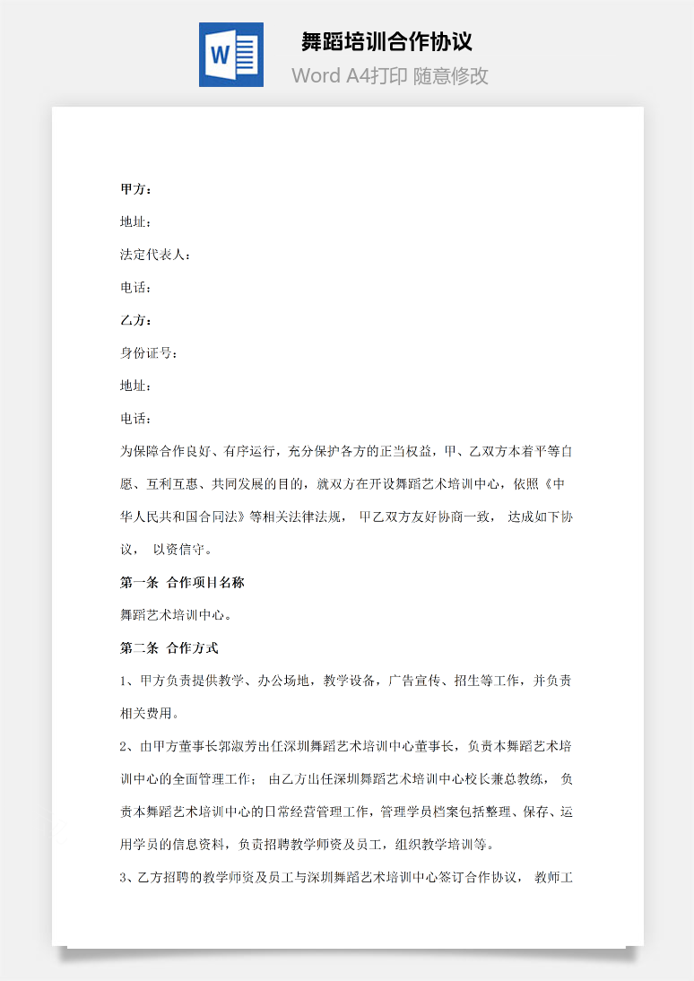 首页 Word模板 合同范本 舞蹈培训合作协议书