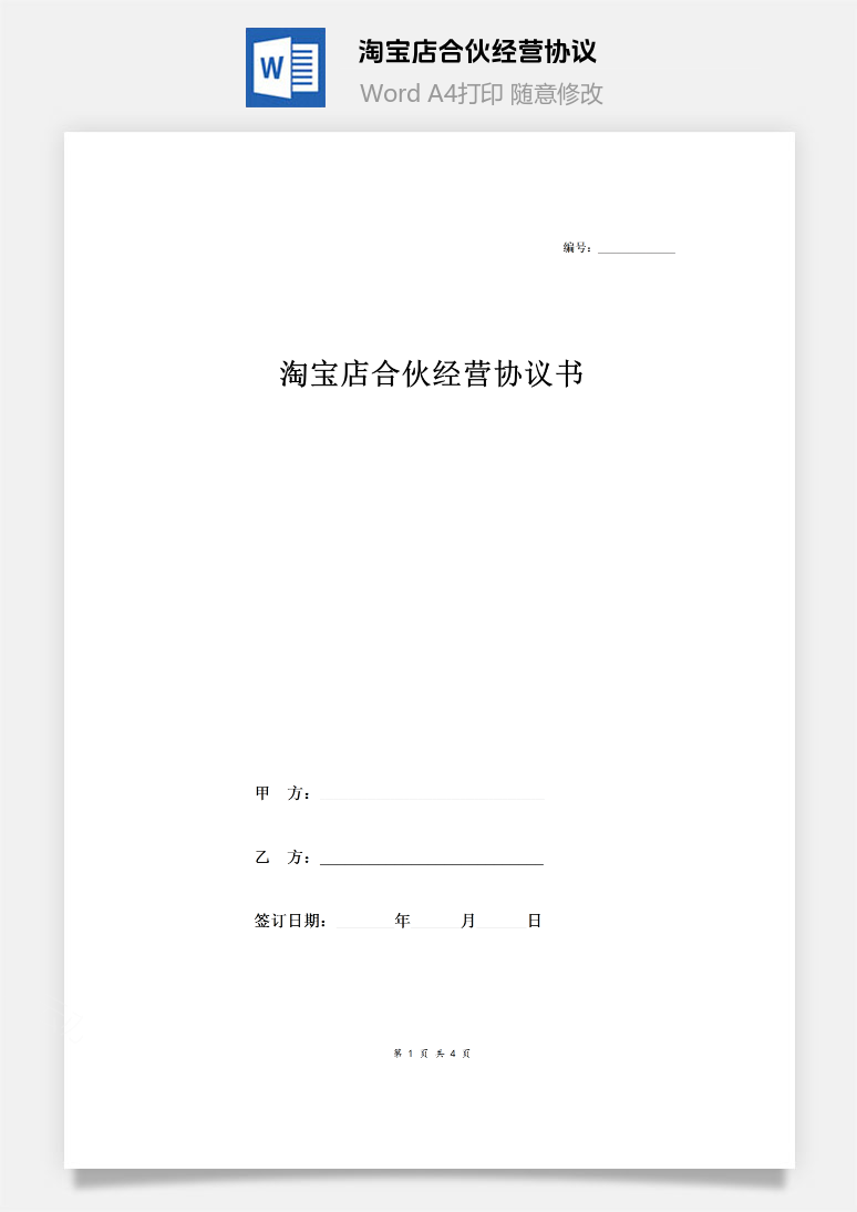首页 Word模板 合同范本 淘宝店合伙经营协议