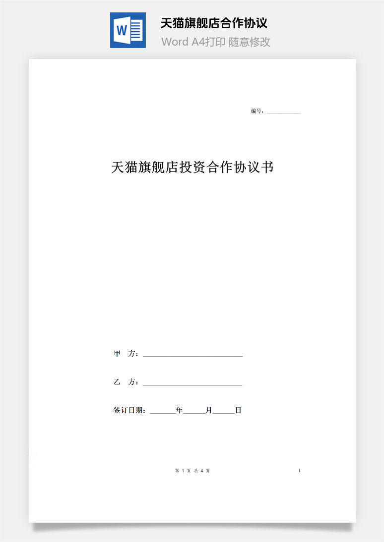 首页 Word模板 合同范本 天猫旗舰店合作协议